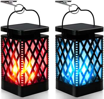Another unique point is that this solar hanging lantern replicates the effect of a candle lamp for mood lighting in homes, gardens, patios, or balconies. Moreover, this hanging solar light is portable and sturdy. This solar power LED lantern is equipped with a metal clamp, hook, and stake, easy to hang or insert the lantern lights anywhere. Last but not least, it is designed to withstand sunny days, rainy nights, and small snowy days.